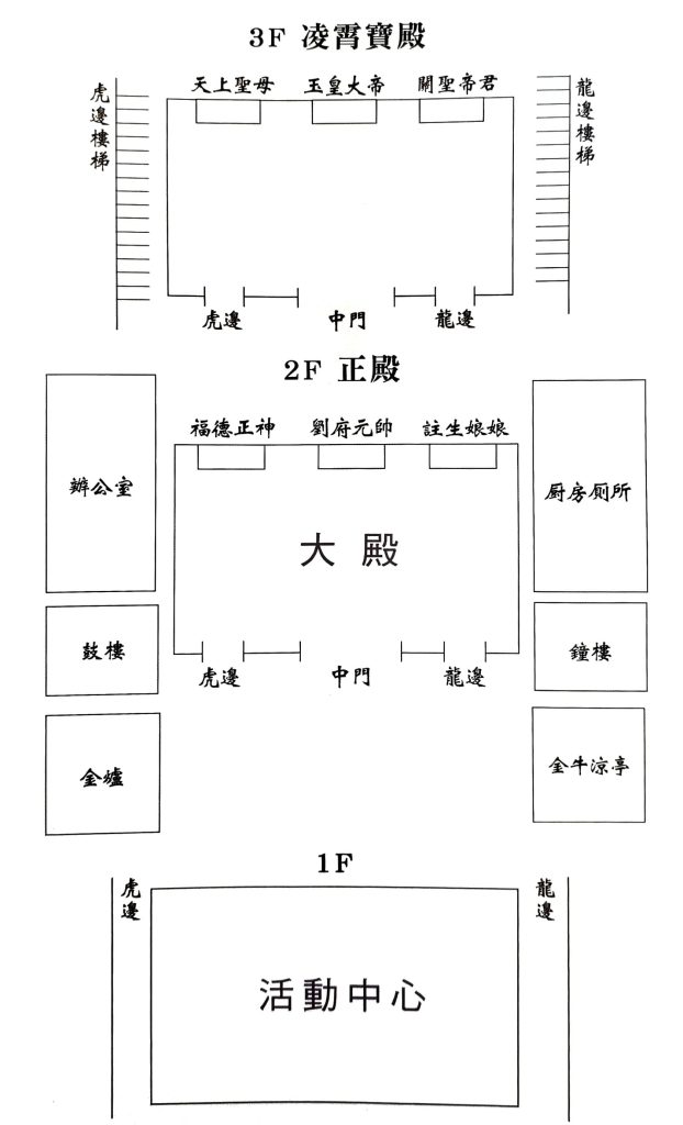 • 陪祀:劍印二官、中壇元帥、觀音佛祖、關聖帝君、地藏王菩薩