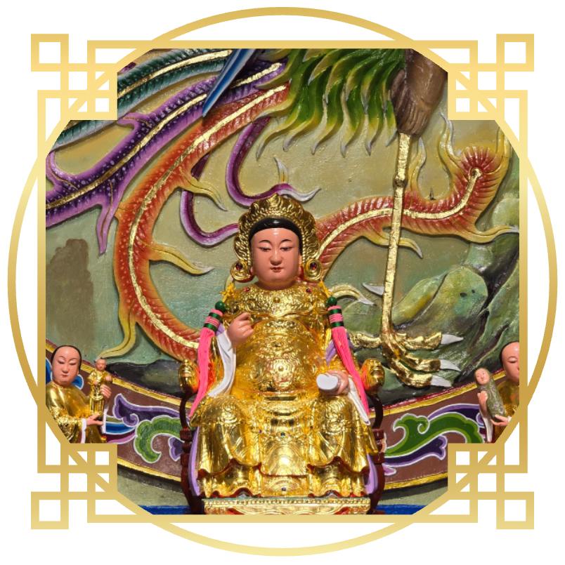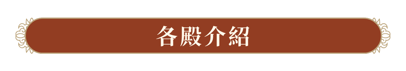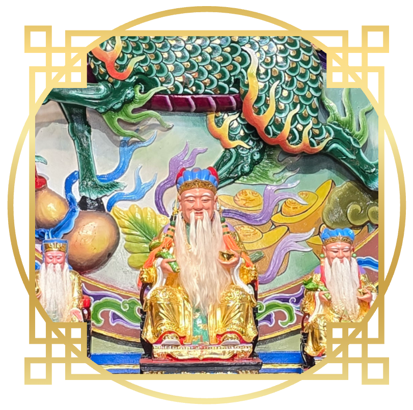 • 陪祀:三官大帝、太陽星君、太陰星君、南斗星君、北斗星君